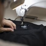 Made of 100% USA cotton, this textile is beefy, durable, and absorbent, and is virtually shrink free as a result of garment dyeing. The garment is washed with natural enzymes, resulting in a broken-in feel, just like a T-shirt that was washed or worn for a decade or two. Its special features include its heavy and sturdy feel and combined with a more generous fit (about 1 wider on the flat than a contemporary T-shirt) and higher neck line.