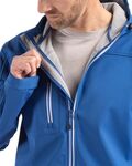 Made from 24 GRS certified post-consumer recycled plastic bottles, the Clique Telemark Eco Stretch Softshell Full Zip Mens Hooded Jacket is a sporty everyday water-resistant jacket for work and for representing your school, college, team or company. The must have, PFAS free, eco stretch softshell jacket is constructed with waterproof rated 1000mm recycled polyester stretch softshell bonded to a recycled polyester micro-fleece interior for all day comfort. The year-round eco outerwear favorite features a full hood with elastic drawcord closures, adjustable velcro arm cuffs and includes a zippered chest pocket to keep your phone close at hand and two zippered on-seam pockets to keep your valuables secure.